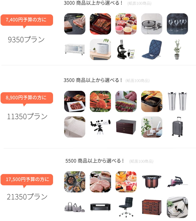 友人用、親族、両親用、内祝い等ウェディングギフトに最適なすべての価格帯をカバー。